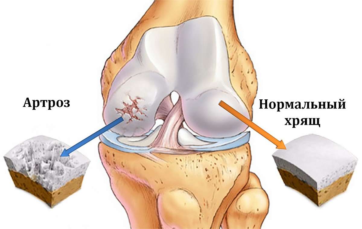Вид артроза и нормального хряща: