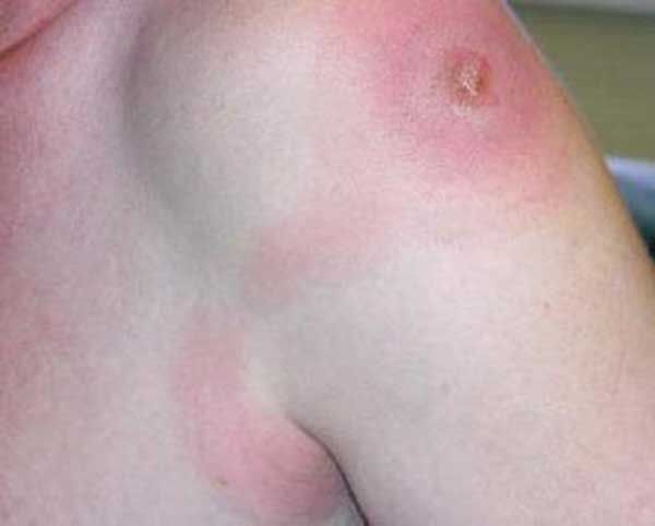 Болезнь[en] проявляется узкими красными полосами на коже. При некоторых формах в области полос развиваются уплотнение и болезненность. Одновременно повышается температура тела, появляется озноб, ухудшается общее самочувствие. При лимфангите глубоких сосудов наблюдаются отёк, болезненность. Хронический Л. характеризуется закупоркой лимфатических протоков с образованием отёков.